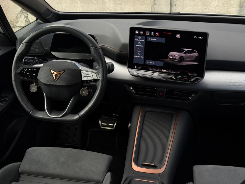 Iespējama garantija. Cupra Born Facelift 60/63Kwh, 170kW, ar pilnu uzlādi pēc ražotāja datiem var nobraukt līdz 526 kilometriem pilsētā un līdz 412 kilometriem ārpus pilsētas.